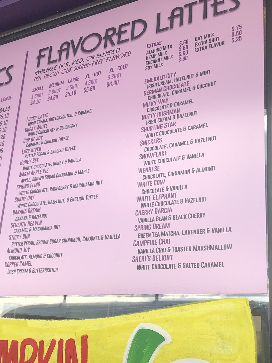 Many visitors enjoy the Almond Joy Oat Milk Latte or the Purple Chinos series, featuring options like a Health Mocha or Sugar-Free Vanilla, which blend sweetness and richness in a balanced way. The drink menu also highlights unique flavors such as Copper Camel with Irish cream and butterscotch, or the White Cow Chocolate with vanilla, adding a warm, indulgent touch to your coffee break.